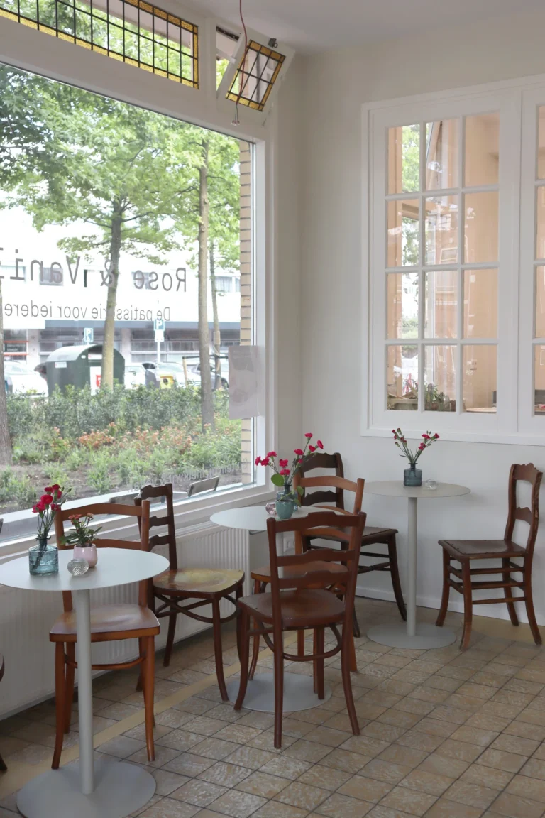 Rose & Vanilla’s story began in a family kitchen, where founder Daphne searched for ways to spoil her children despite their gluten and lactose intolerances. Those early experiments turned into a passion, then a neighbourhood sensation, and finally the beloved patisserie that Utrecht knows today. Everything is still made in their spotless, innovative bakery—affectionately called “the lab”—where new flavours are invented, tested, tweaked, and perfected with care, creativity, and plenty of laughter. If a combination sounds unusual, that’s usually the moment the magic begins.